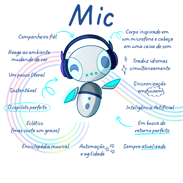 Com um visual inspirado em microfone e caixa de som, Mic é um robô de inteligência artificial, mas com personalidade de sobra: