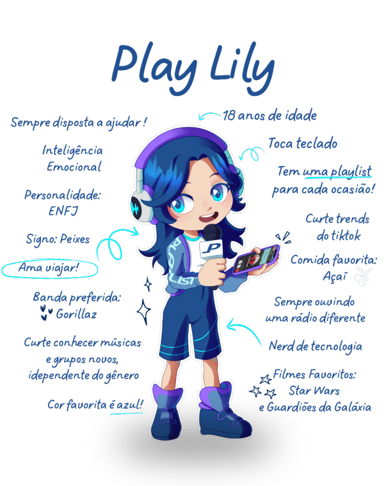 Desenvolvida pelo nosso time de marketing, Play Lily é uma jovem que está sempre por dentro das últimas tecnologias e desenvolvimentos dentro do meio da radiodifusão.